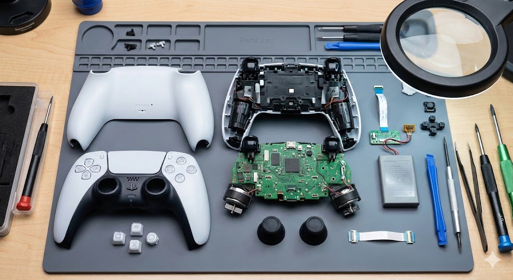 Avhjälper fel på kontroller som drift och sega knappar. Vi rengör, reparerar och byter ut defekta delar i din kontroll. Du kanske är sugen på att byta färg på knapparna? Ett batteri som håller länge? Eller driftfria Hall effect-spakar?